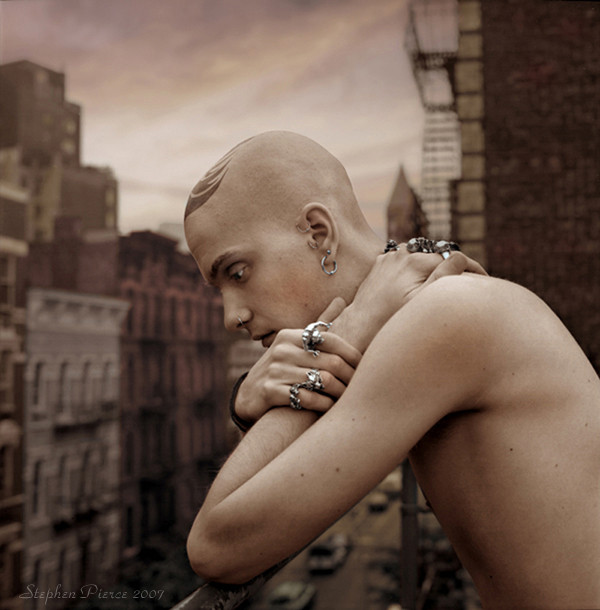It's almost scary how realistic it looks. Like realistically, you know the horns are fake, but it just doesn't look it. The background and the expression on his face makes me think of some fantasy/horror movie. I can envision it in my head, with him being the atypical anti-hero. I really like this piece.