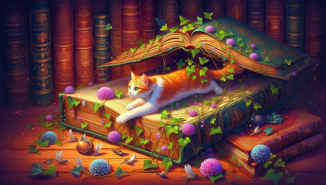 #cat #bookworm #photoshop #wallpaper #dailychallenges #synthography