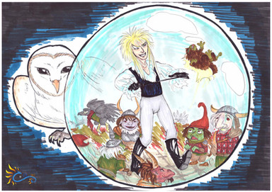 This was a piece I made for my fiance for christmas a couple of years ago since labyrinth is a shared favorite of ours, this has also became a very popular print at cons at my table. This whole thing is pen line drawings with watercolor.Related content