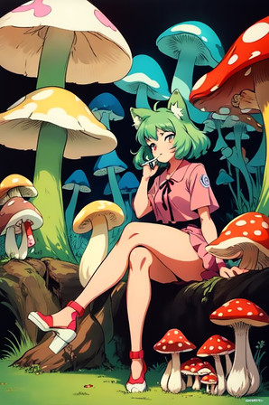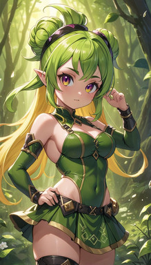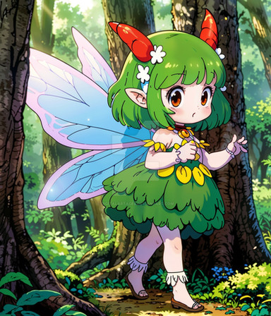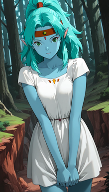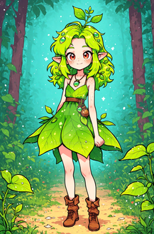 #fanart #anime #characterdesign #animegirl #originalcharacter #fantasyart #fantasycharacter #curly #curlyhair #curlyhairgirl #cute #cutedress #demon #demongirl #dress #forest #green #greenhair #greenhairedgirl #horns #woods