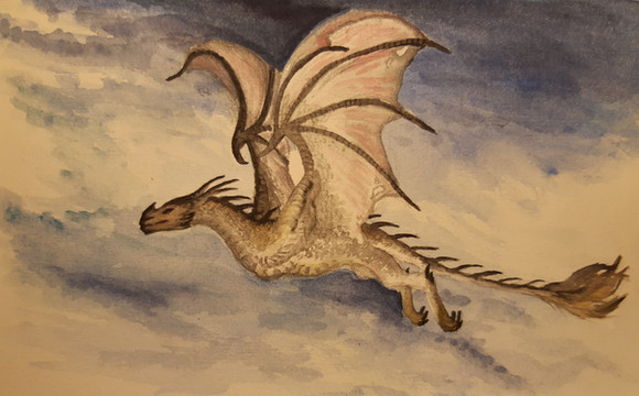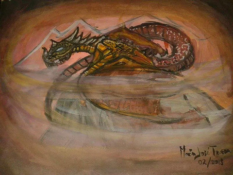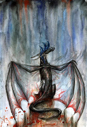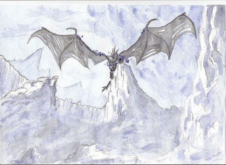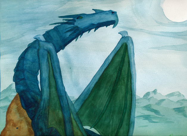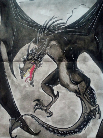 This is the water colored finish product of the sketch. I wish I had the demensions for you but this was a house warming gift to two friends of mine that are lovers of Skyrim.Painted by BadLuckFox