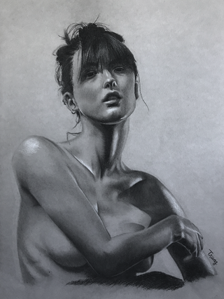 #charcoal #charcoaldrawing #charcoalportrait #portrait #midtonepaper #modelfemale