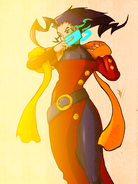 Well I just sketched and scanned it and then I did lineart and color in photoshop. I didnt even use my tablet for this one.