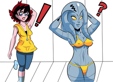Version one of the costume didn't quite... well, work, really. Good thing only Pepper, Natasha and Carol were in the room... Tony probably would have been coming up with off-colour remarks for weeks, let alone how Steve and Bruce probably would have blushed themselves to death!