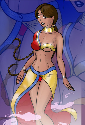 Astarte from Castlevania: Portrait of Ruin (and possibly other games, can't remember)."A woman of irresistible beauty. No man can defy her will."