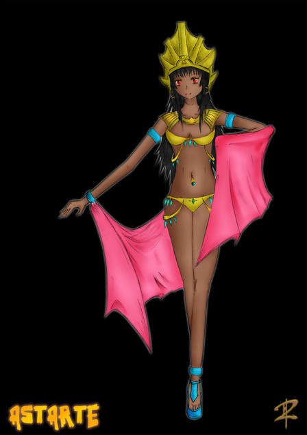 and She's also makes has reference to Astaroth a goetian devil but Astaroth has got a male version and a female version, so i don't know if astarte is astaroth ^^..