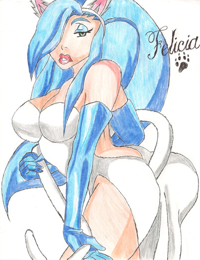 I'm pretty sure that if you draw fan art of any female video game characters, you are required by law to draw Morrigan at some point. So here she is. I was worried that her arms would look wierd, but I think they turned out ok. Her forhead may be a little wierd. I can't really tell right now.Photoshop CS