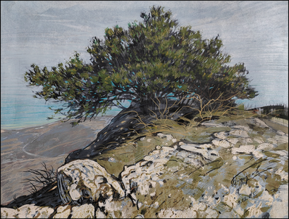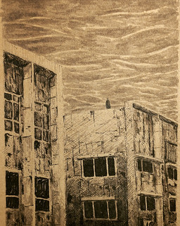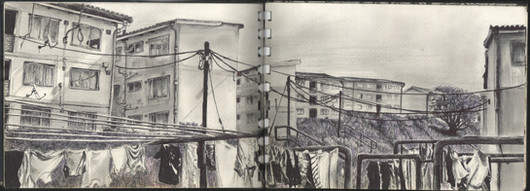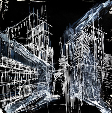 Materials: India ink, white acrylic, black and gray pencils on pre-toned paper, 30x40 cm.