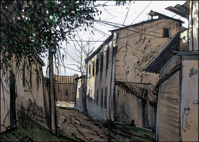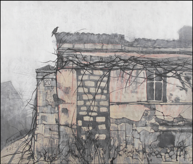 Материалы: чёрная тушь, акриловые белила, чёрный и серый карандаши, тонированная бумага, 30x40 см.