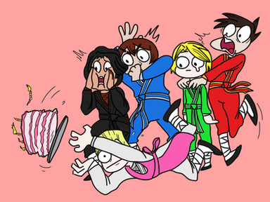 LOL Awww~ The guys are letting Jay toss a cake in Coles face for his birthday. Unless it's Cole's birthday, in which case, a cake in the face doesn't seem like a very nice present.