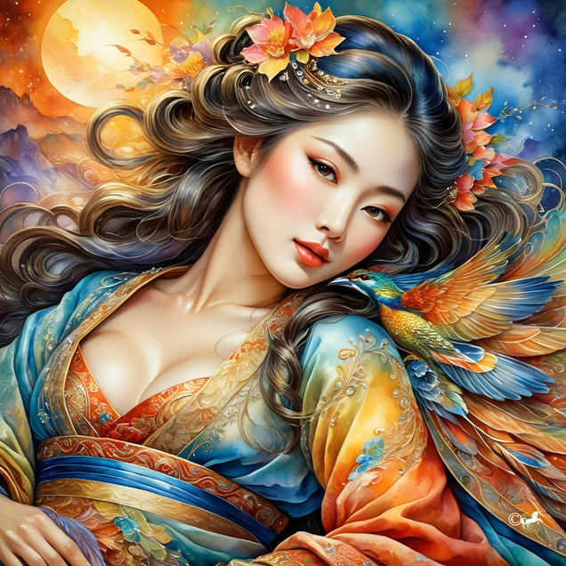 #kimono #digitalart #anime #characterdesign #cartoon #portrait #beauty #magic #digitalpainting #wallpaper #wallart #floral