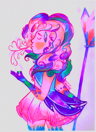 #artwork #bow #cute #doodles #pink #yellow #bloom #brightcolors #digitaldrawing #digitalillustration #flowergirl #flowers #plantgirl #spotlight #clipstudiopaint
