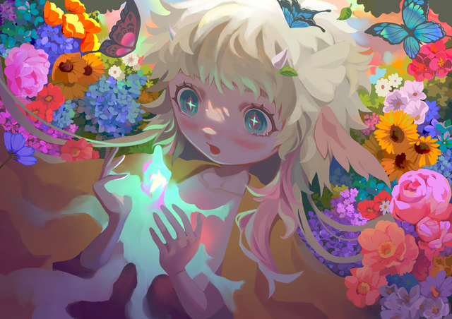 #blue #purple #digitalart #digitalillustration #elfgirl #fantasyart #fantasygirl #flowers #speedpaint #artworkdigital #clipstudiopaintex #glowing_effect