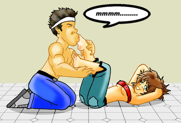 Though she really should use her other foot to tickle his ribs, forcing him to inhale.