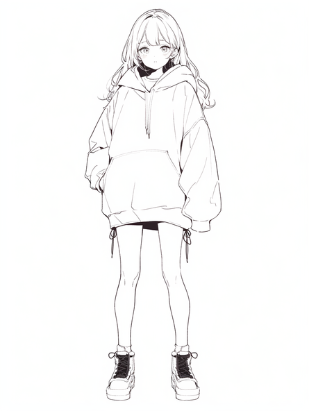 #anime #bangs #cute #digitaldrawing #drawing #folds #hoodiegirl #krita #line #lineart #manga #animemangagirl #longhairgirl #mean