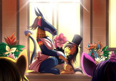A commission by AnonDerp Wyane : Muffin stock trader and mail pony at day and the Derp knight at night.