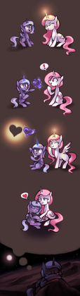 I have a funny feeling that Luna and Discord are probably gonna be having one hell of an argument very soon. In any case, this is cute. I wonder if that means that little baby is hungry again.