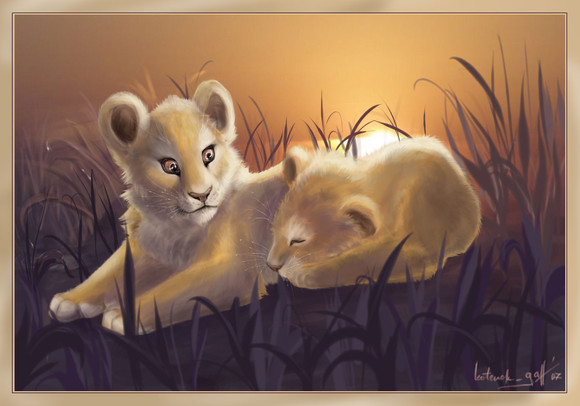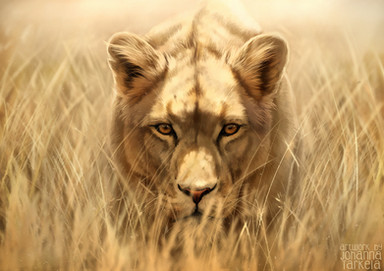 (This picture symbolizes the simple goodness that I encounter as I continue along my journey of life. It is truly a glorious feeling to be greeted with comments of cheerful support from people who hardly know you. More than just heartwarming, the unselfish gift of genuinely kind words, are truly inspiring. The character pictured belongs to: . I had no intention of doing this picture at all but her words touched me so along with the others that I have been receiving, I just followed the course of inspiration. The image too was partially inspired by a photo featured on national geographic's page for the new documentary film on the Kalahari Lions: [link] specifically: [link] . I always especially loved the soft colors the morning sun conjured amidst the Kalahari grasses.)