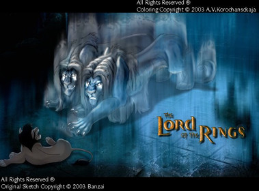 Love the blurred effect over the nazgul lions, although I think they might've looked more nazgul-ish in black...or were you trying for the look they have when Frodo has the ring on?