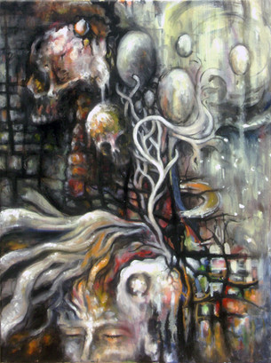 named after the last two minutes of interpol song by the same name. the music is the most wonderful expression of existentialist acceptance of the futility of our actions and the realization of a fatalistic reality. the painting is the same. acceptance of the chaos of the world, however painful and unexpected it might be.... it is the way it is, and the only option we have is to roll with the punches or die. hope shines eternal, but its a purity we can never touch fully; we are lashed to the world we know.oil on canvas. 30x36. painted with fingers and hands, brush only used for gesso purposes.