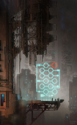 The only photo textures on this one were used as a base for the building lights, heavily painted over to suit the image.