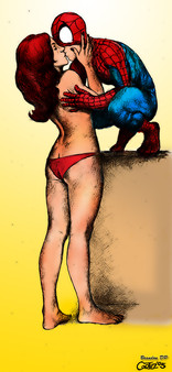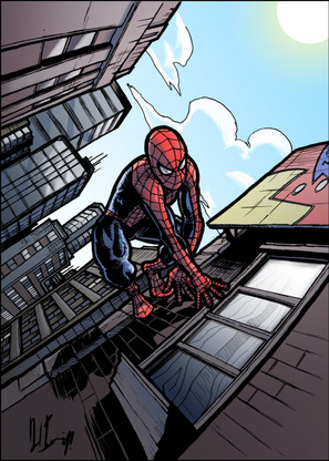 The highlights on Spidey are perfect, and you put a lot of great work into the background, especially in giving it a texture. I'm glad you took everyone's advice to heart, because backgrounds have been your weakness, and you definitely took steps to improve that aspect of your coloring.
