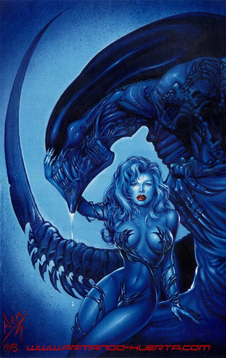 Thought this peice is unfinished and is only a small portion of what the final image will display. I wanted to throw it up in here for you all to see. Believe it or not, this is still only ballpoint pen. for some reason the parer I used for this one has allowed me to create a very smooth texture for the devil womans flesh. ( BTW the final image will include the fallen angel whos wing she's chewing on! )Related content