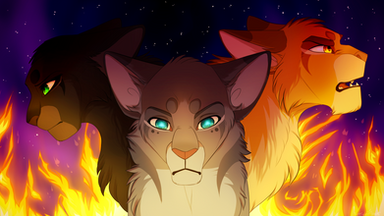 Characters from left to right: Lionblaze, Hollyleaf and Jayfeather.