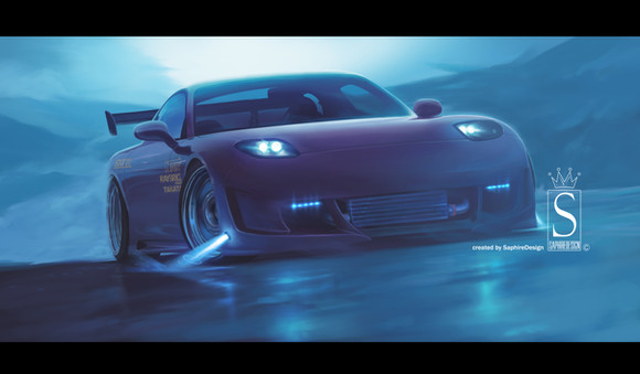 Mostly tablet-work, so its brushed, try to make it very unique so i brushed the reflections, and made the first rim and the background from several pictures. Try to make it similar to a Need for Speed picture. Orig: [link]Related content