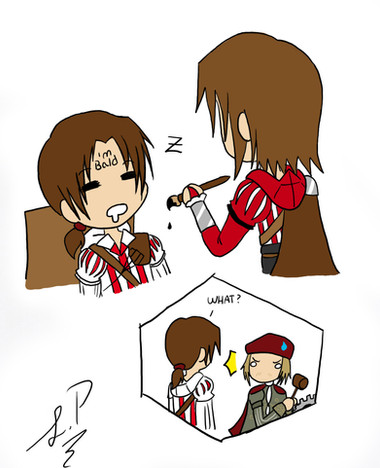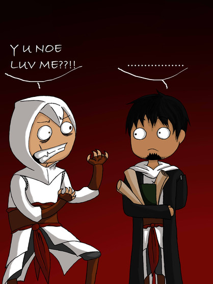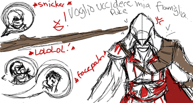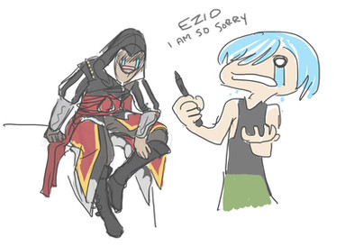I was bored, and I drew Altair screaming fail.. Then once I completed it I instantly thought adding in the original Crying Ezio and it came out perfectly.Enjoy.