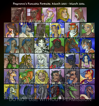 All the portraits I've been doing, well some were left out because they weren't loved, and I didn't like'em.If there's anyone interested in some of these, I have four portraits on there that're for sale, I'll fix'em up if you're going to buy it, I don't care. I don't need them, and the one in the purple is a maybe, because I haven't heard from the comissioner for quite sometime. [link]