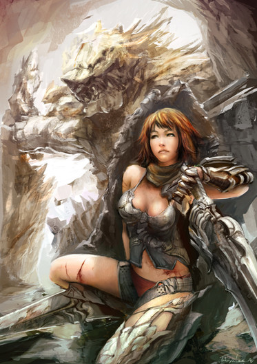 Unlike some, I couldn't care less about the practical implications of her armour and overall design; it looks striking, sensual and fantastical - that's enough for me to call and enjoy it as art. Particularly fantasy art. Realism beyond a certain point defeats the purpose of fantasy. Aside from the pure sex appeal of that gorgeous buttock, I like its effect from a compositional perspective as well; that smooth, soft, milky expanse of flesh is a pleasing and striking contrast to the darker, often harder areas of metal armour and stone columns.
