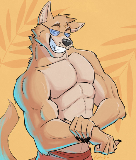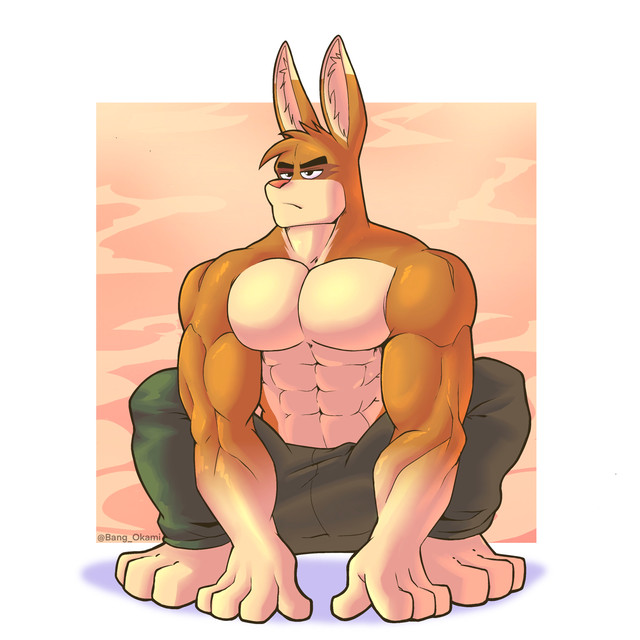 #anthro #digitalart #furry #shading #sweat #roocky #art #bangokami #bangroocky #anthropomorphic #kangaroo #simplebackground #muscularfemale #six_pack_abs