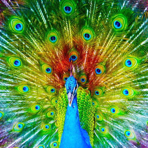 I see you started to trail the peacock with stars and it would have looked splendid if you continued along that trail. Or, even, better perhaps extended to convey the sweeping motion of the peacock tail feathers.