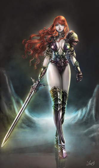 这个角色主要是以在我现实生活中的人为原型,主要素材为希腊神话中的戈尔贡三姐妹,以及公主身份的服装。笔墨花的比较多的非常明显就在于盔甲,我不想搞成那种千篇一律的厚的要死的彪悍重甲,毕竟是公主之躯,所以决定用比较轻巧的装甲,又能显得英挺,身躯上索性也不加盔甲了,毕竟盔甲最酷的地方不在于胸口,女人的胸部怎么能用铁去遮盖呢,虽然肋骨上的软甲我比较不满意,既然画了又想不出怎么解决好,就放在那吧,镶点宝石算了。