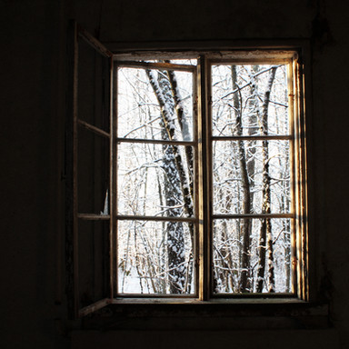 Rummets mörker mot naturens ljus... Fången inomhus... längtan ut mot friheten...