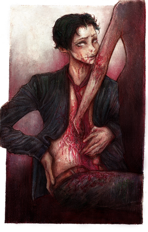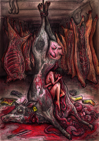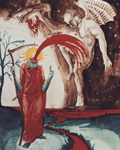 #angel #blood #cronos #cronus #darkart #goya #horrorart #saturnalia #saturno #goreart #baratsu #guroart #gurocore #ocultims #cannibalistic #devouring #illustration #painting #saturn #titan #watercolorpainting #goretober