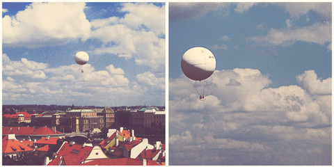 Z jednego z okien w mieszkaniu mojego znajomego, gdzie nocowałam podczas wakacji. Po prostu wyjrzałam przez okno po porannym ogarnięciu się i tak sobie wszystko obserwując, dojrzałam właśnie jak balon odlatuje