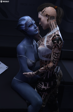 "I was bored," redhead said honestly. Then Liara kissed her on the lips.