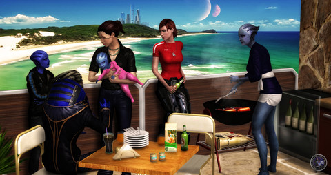 It seems our brave warriors decided to remember the old days!Joint picnic !!!Jane decided to diversify their weekends with her beloved and friends)))!But look at Miss Liara T Sony,what grace and beauty,especially how she put her foot on the foot!just sexy!Liara was a goddess of universal beauty!