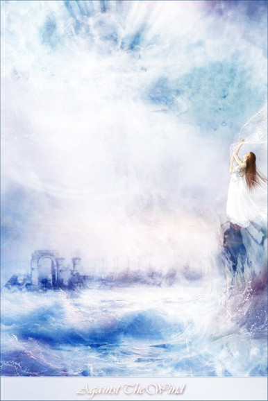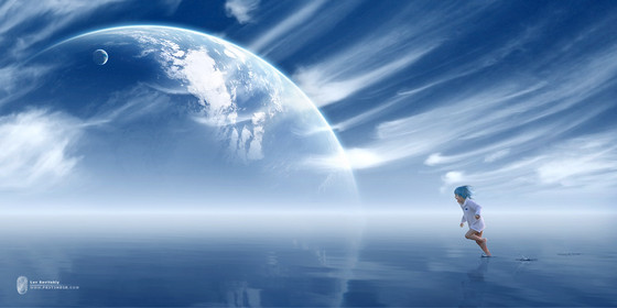 OH MY!!! this reminds me of the VERY beginning of the introduction of the kindom hearts 1 game when the clouds are parting...it actually sort of reminds me of the whole thing the way this is positioned...really amazing work! i love it! the girl is gorgeous nice dream-like quality