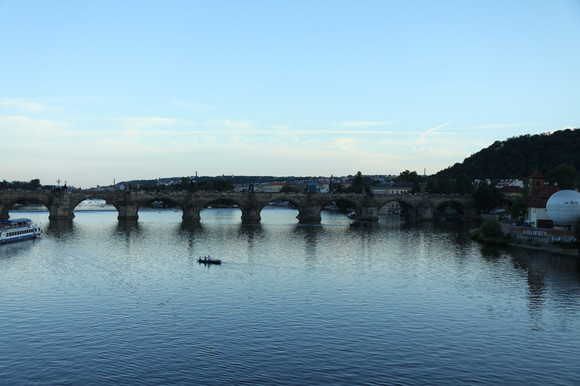 In the background is the mediaeval Charles Bridge in Prague, with its famous statues puncturing the sky.Not sure i have the right category here.