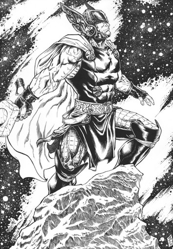 This is a commission for a friend of Thor pencil right now I start inking. As you can see the bottom is only sketchy, I hope to give detail with black background and the rays emerging from the hammer. I hope it is well.If you are interested in a commission my email is jjordansola@hotmail.com or you can send me a note.