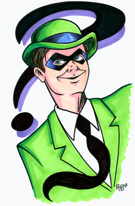 On film he was played by Frank Gorshin (1966 Batman) and Jim Carrey (1995 Batman Forever). Of course Frank Gorshin was the original Riddler and was the best. But I also liked how John Astin played the Riddler in the second season of the Batman TV show. I liked how Astin played Riddler with a lot more villainy than Gorshin did.