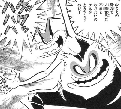 Here is Terror Toad, a monster who appears in the 12 episode of Power Rangers (original episode), Power Rangers Punk who is created by Finster to destroy the Power Rangers. I believed that Terror Toad and Dora Boogaranan is inspired by Jinmen from Devilman or a kid-friendlier version of Jinmen from Devilman.Mighty Morphin Power Rangers belongs to Saban Entertainment, Fox Kids and Toei Company
