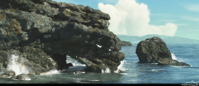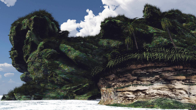 It's been in my head for some time to try an image like this. Anyway late last night I made a quick model of the rock in Sculptris, the birds are Noggin's Seagulls.I also used my FFF metanode to achieve the distribution of birds shown.