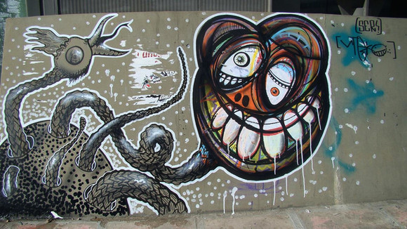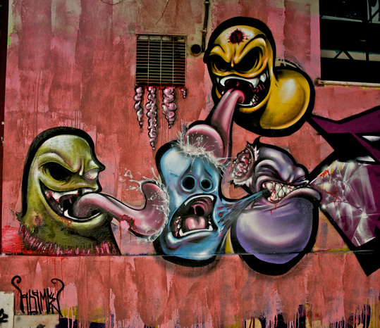 I've always been a fan of graffiti art and love this piece by you. I have also always wanted to learn the art of graffiti and was wondering, when you do this sort of image do you plan it out by doing a sketch first and then taking it to the street, or do you just find a blank wall and go at it?