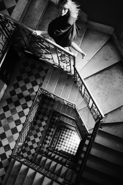 I love how innocent she looks and how empty and endless the stairwell appears.
