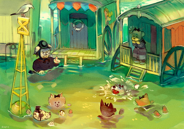 I love the colours in this! I always worry over how bright puddles should be, but you've done it well! :D