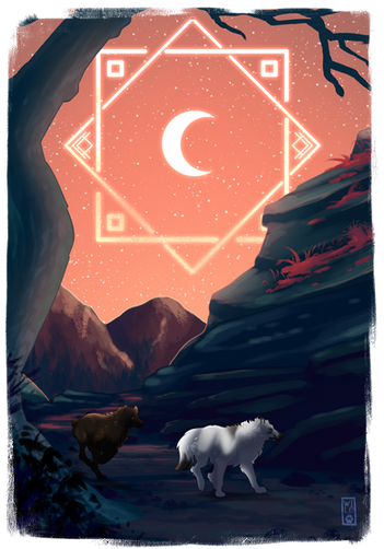 3. A great eagle has coaxed your tokota to the top of a mountain, insistently urging them to follow. At the top of a bluff, there is a sheer drop in between them and another plateau; the eagle appears to be challenging them to leap. Will your tokota back down, or take the challenge and feel what it’s like to soar?